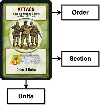 This card is saying...I'd like to declare orders to 3 of my units in the left flank of the board.