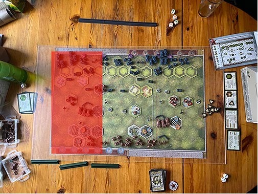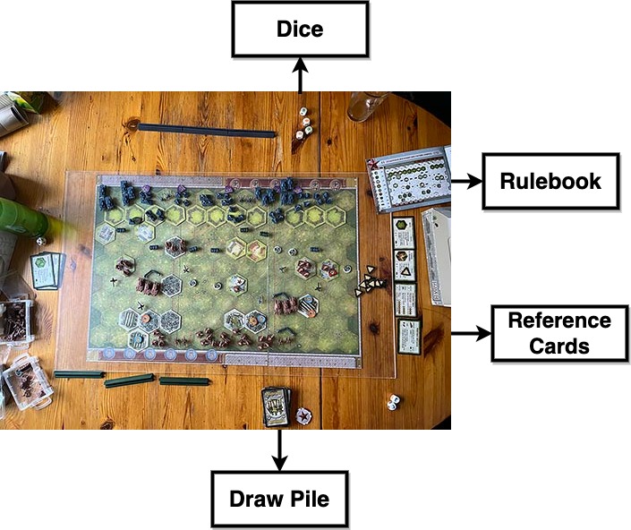 In memoir 44 you use your hand of cards to dictate potential actions for squads. The win condition is usually 6-12 medals with each destroyed enemy squad becoming a medal.